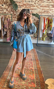 BOTEH - SEPTIME SHORT WITH BELT - SUNBLEACHED BLUE DENIM